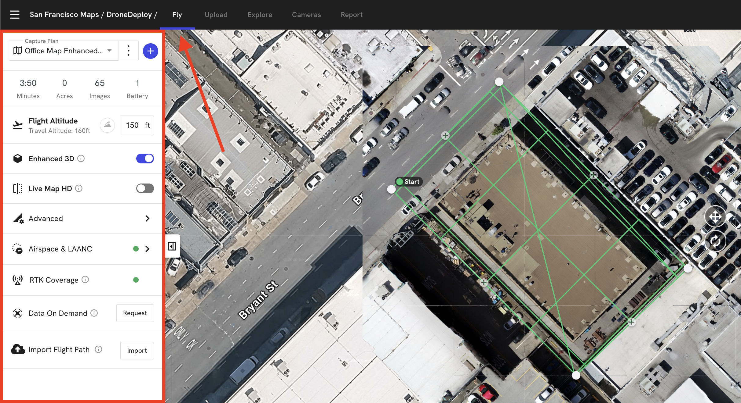 Flight planning is the most effective way to ensure a successful map and 3D model. Use the Flight Settings menu to optimize image capture for different environments, such as high-density vegetation or reflective surfaces.