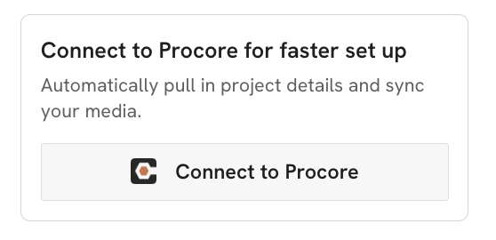 On the right side of the project creation screen, choose the "Connect Procore" option. This will allow you to choose a project and import it from Procore.