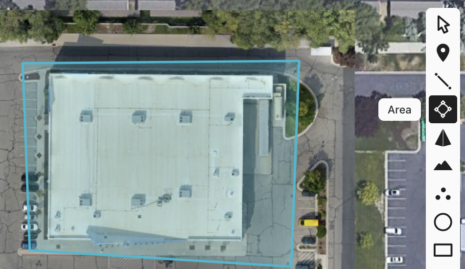 Outline the building: Use the Area tool to outline the building or buildings you want reported.