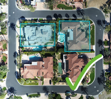 You can mark multiple buildings in one map. Add multiple area annotations to select multiple individual buildings. Each building comes back with a separate roof report.