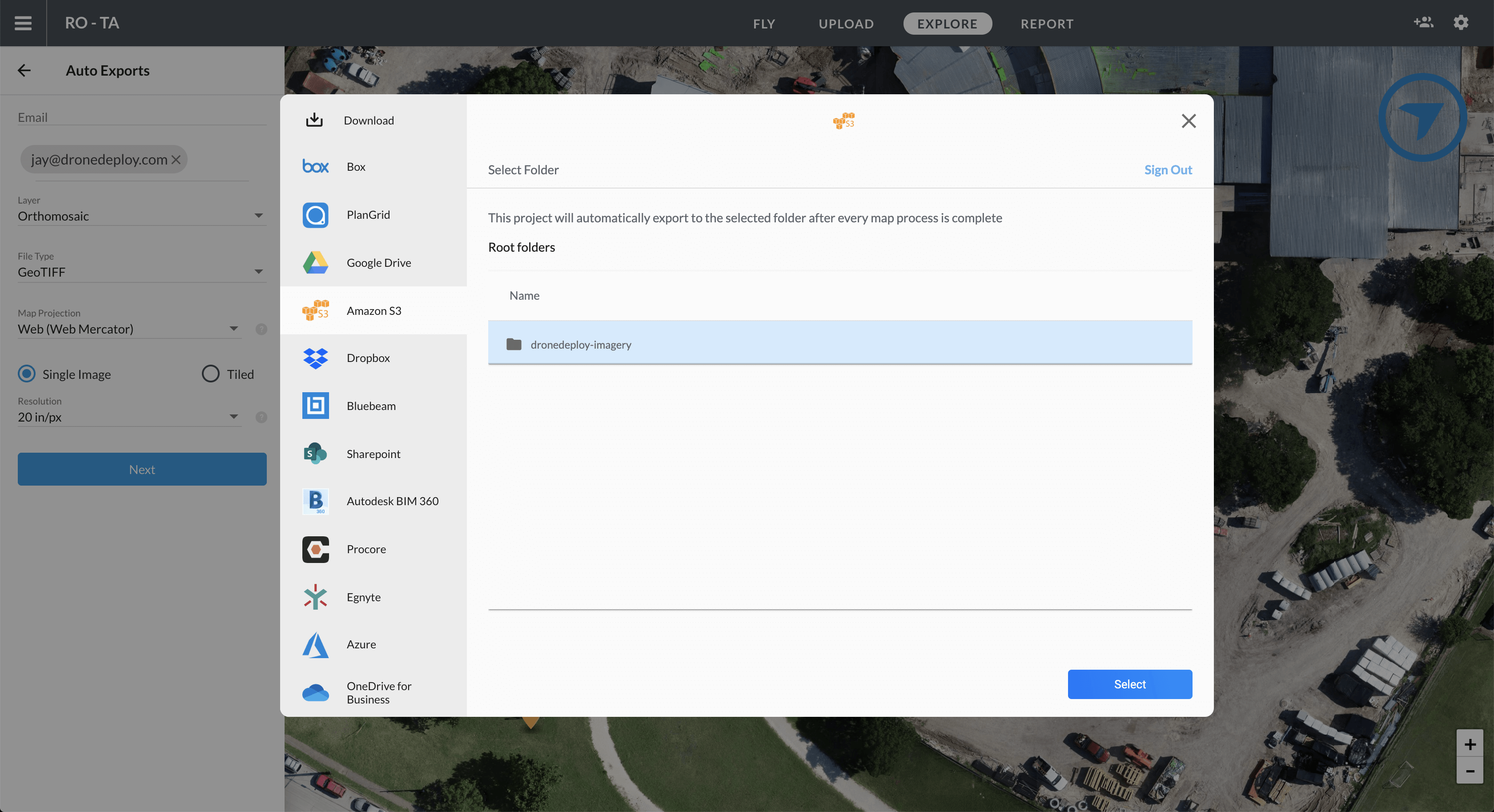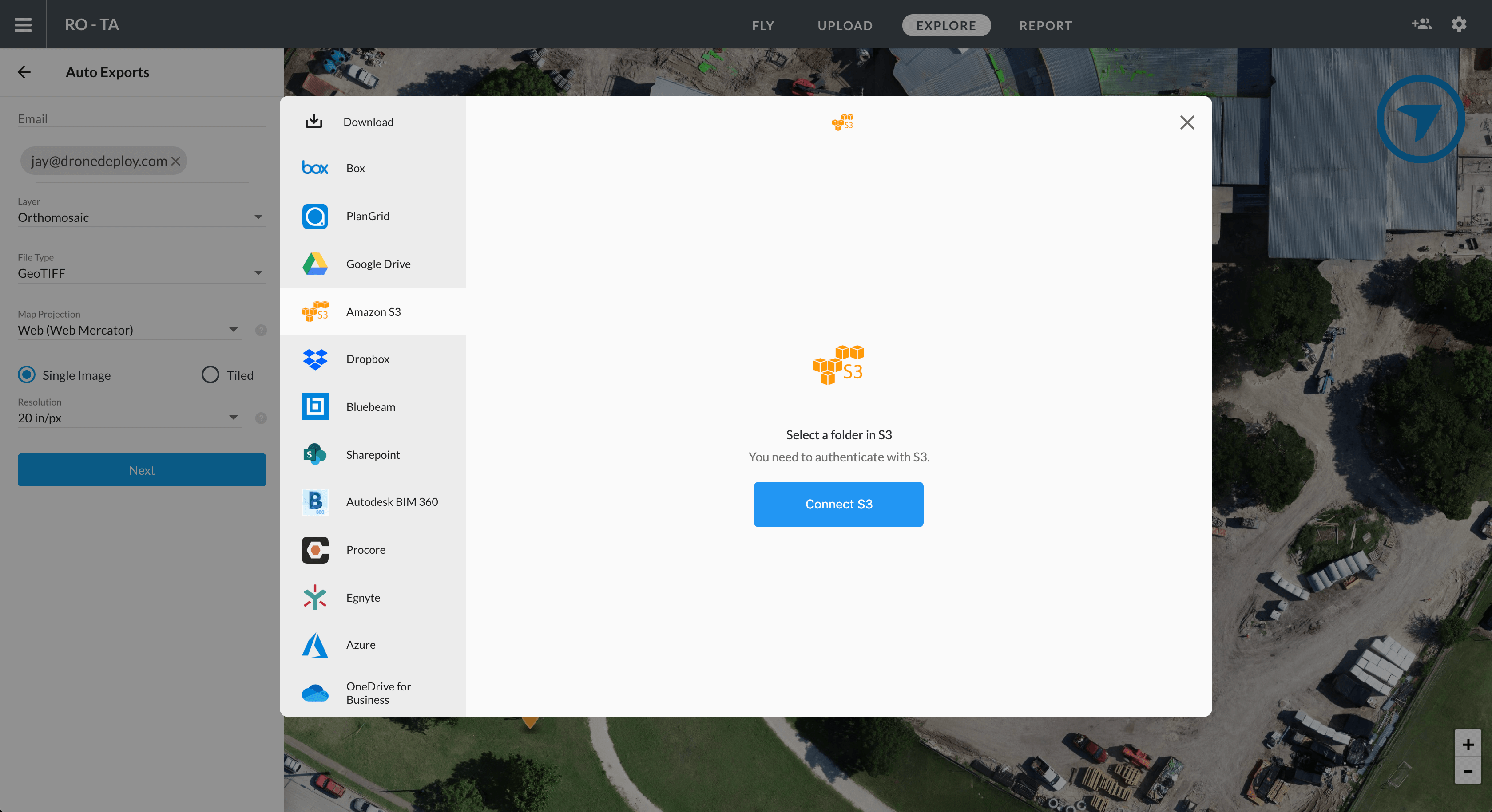 S3 Auto Export is available for all paid DroneDeploy Aerial subscriptions.