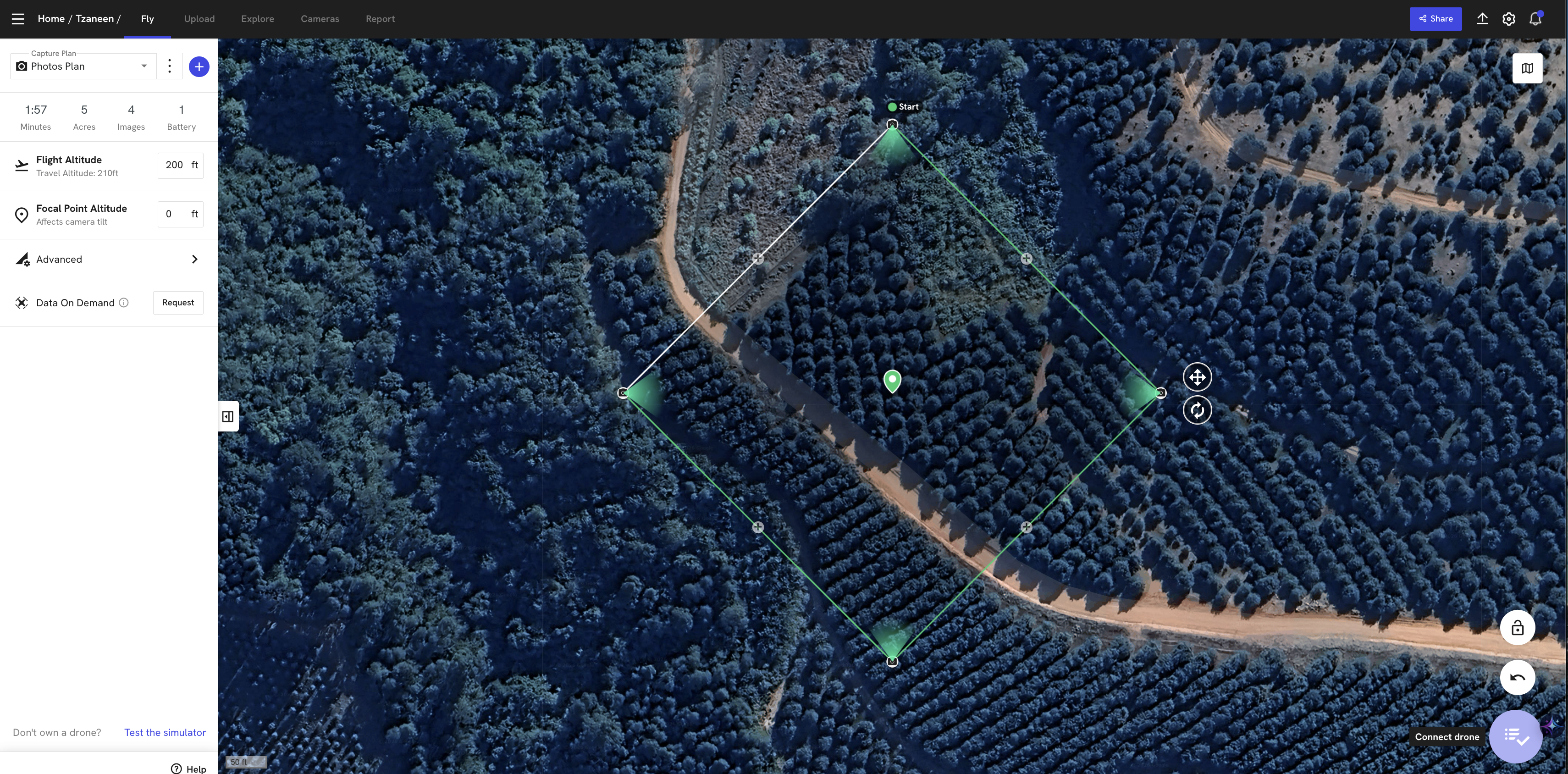 Open the DroneDeploy app, select your Photo Report template and connect your drone to fly.
