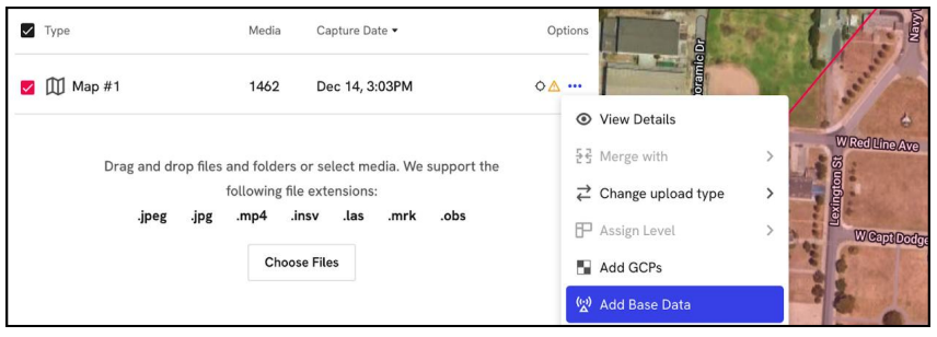 You can also choose Add Base Data under the 3 dot menu. Drag and drop your Base Station's OBS file or .0-23O. Click Process