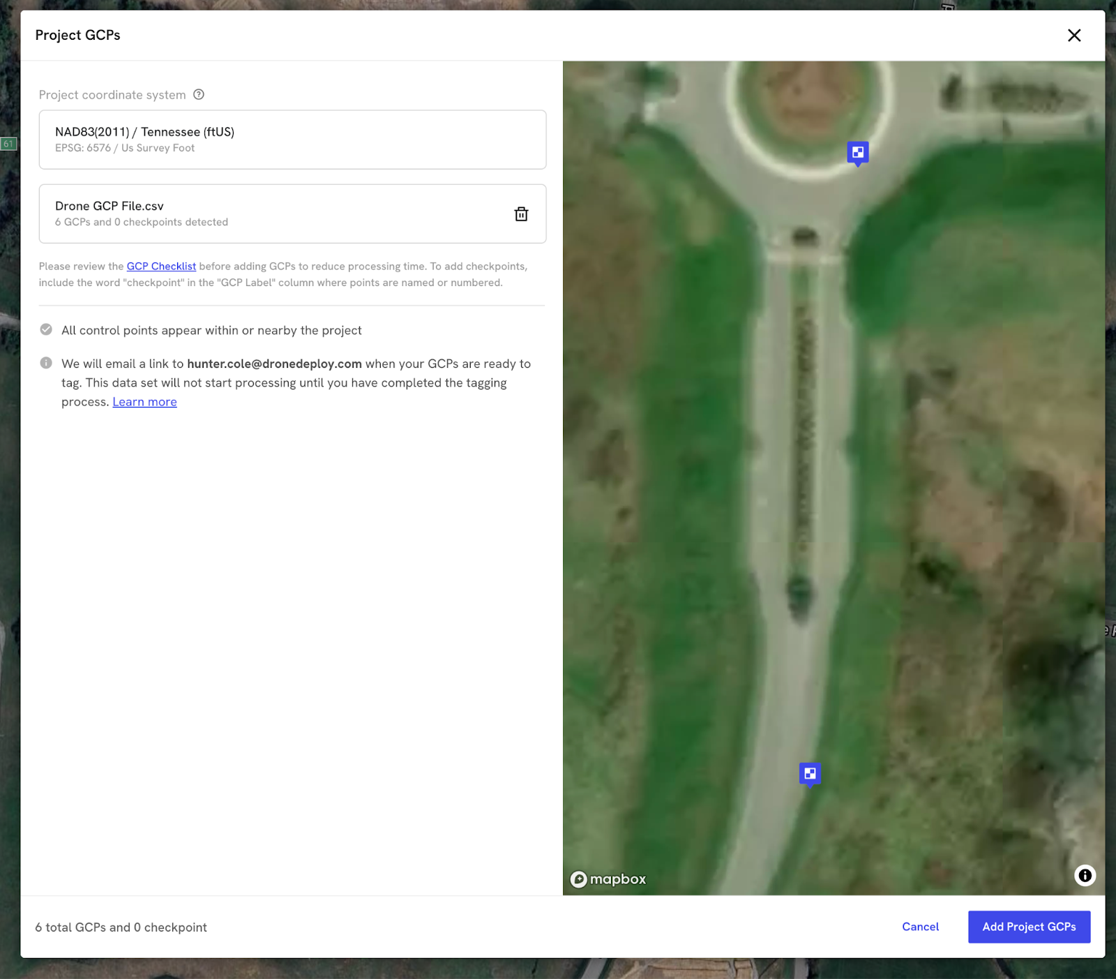 Confirm your GCP count and location on the map, then select Add Project GCPs.