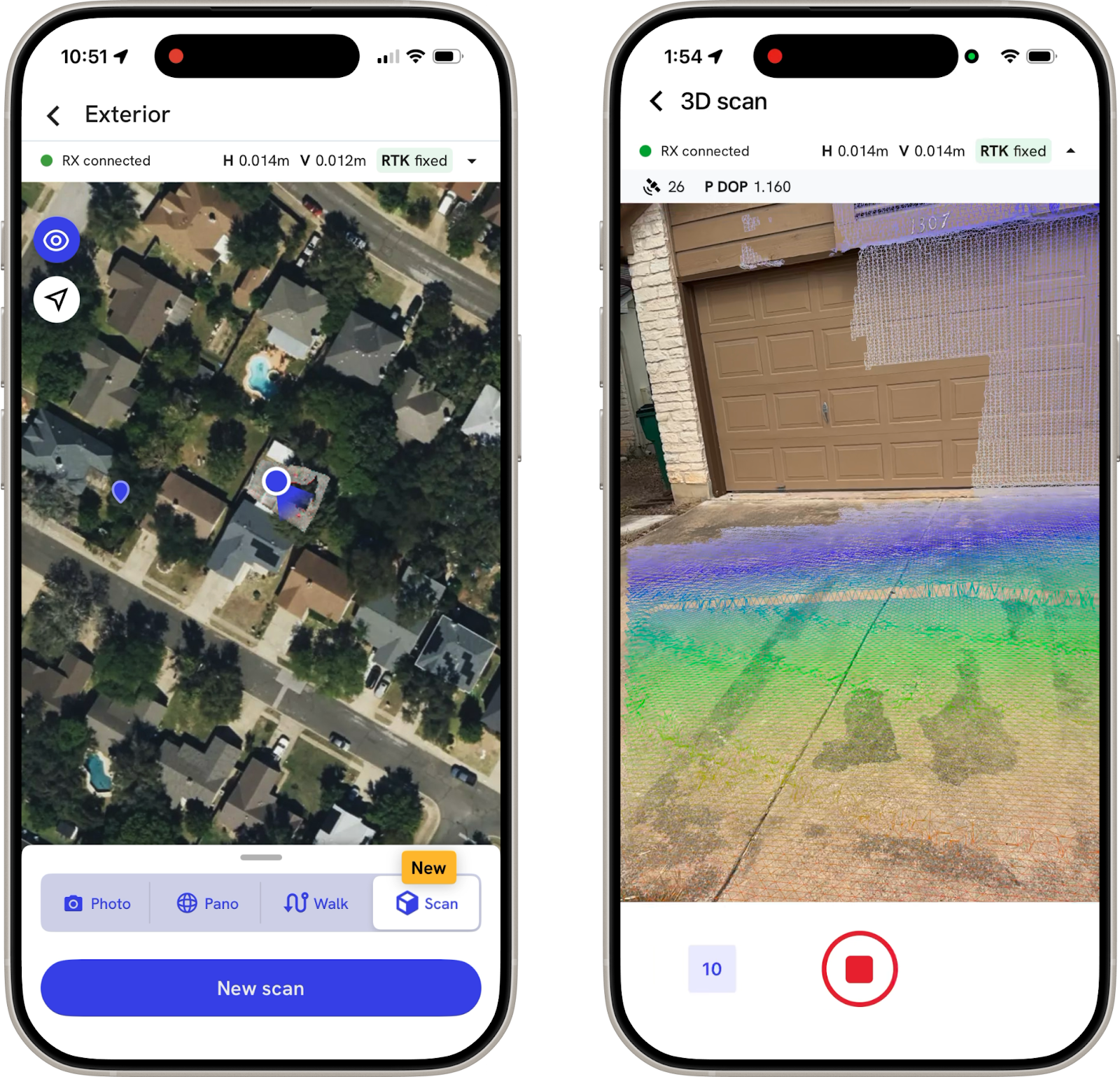 Scans captured in RTK-connected mode are automatically georeferenced.