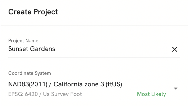 Note: For the best experience, always choose a geolocation representing your planned data collection location. Please connect with Support@dronedeploy.com if you need to alter your project location after creation.