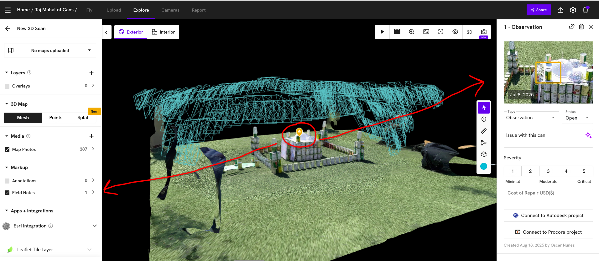 How to create Field Notes on Mobile 3D Scans or Facades that appear in the Field Note Report